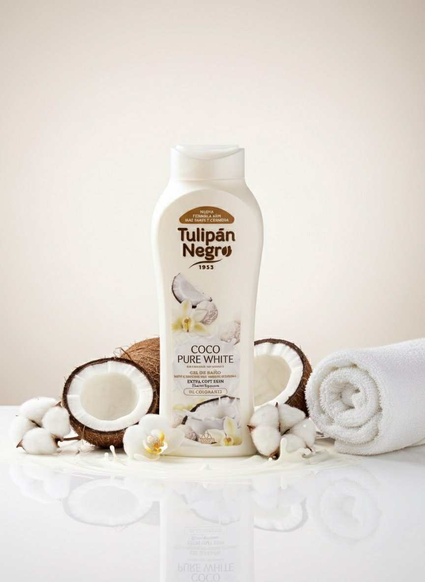 Plongez dans un paradis tropical avec le gel douche Tulipán Negro Coco Pure White.